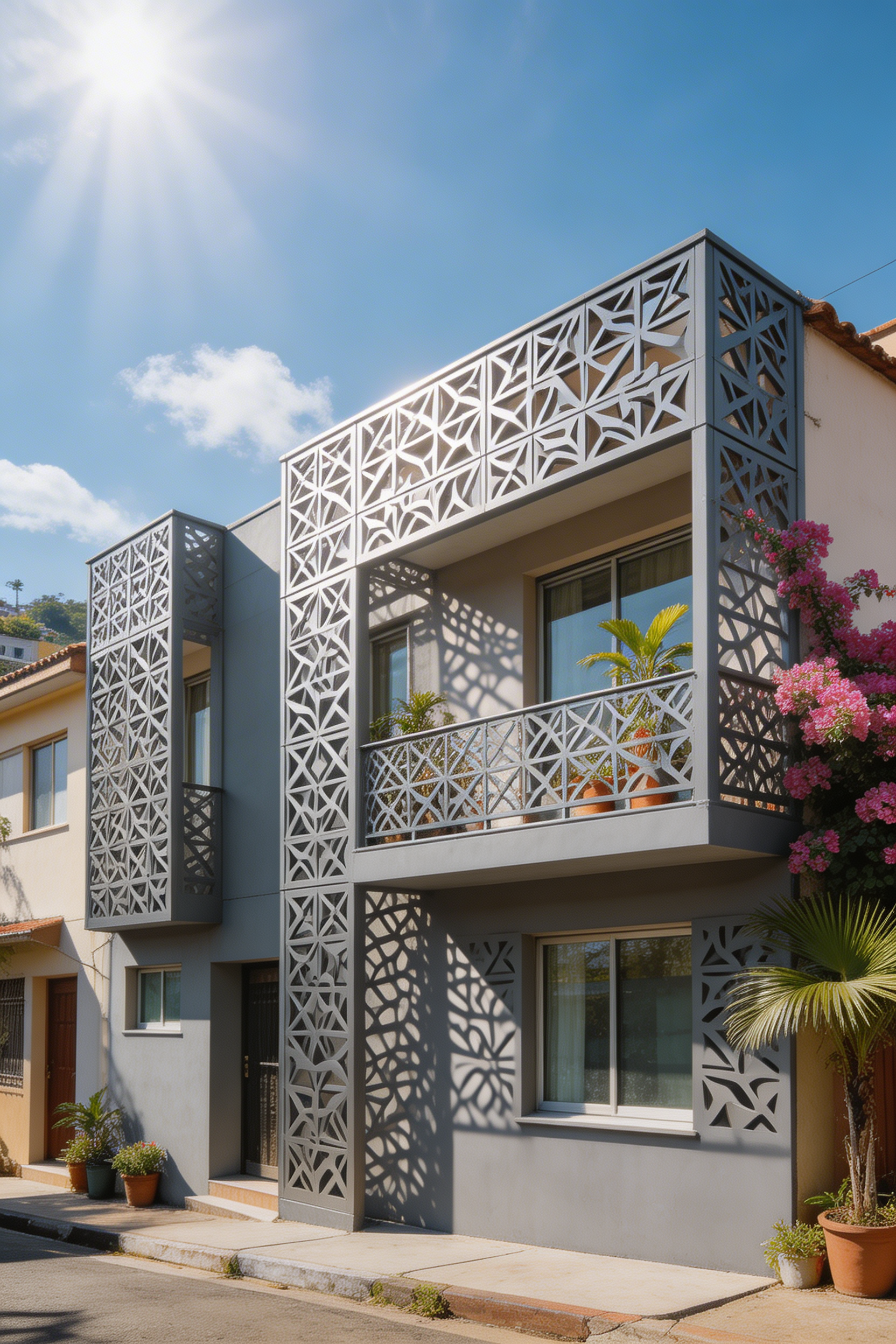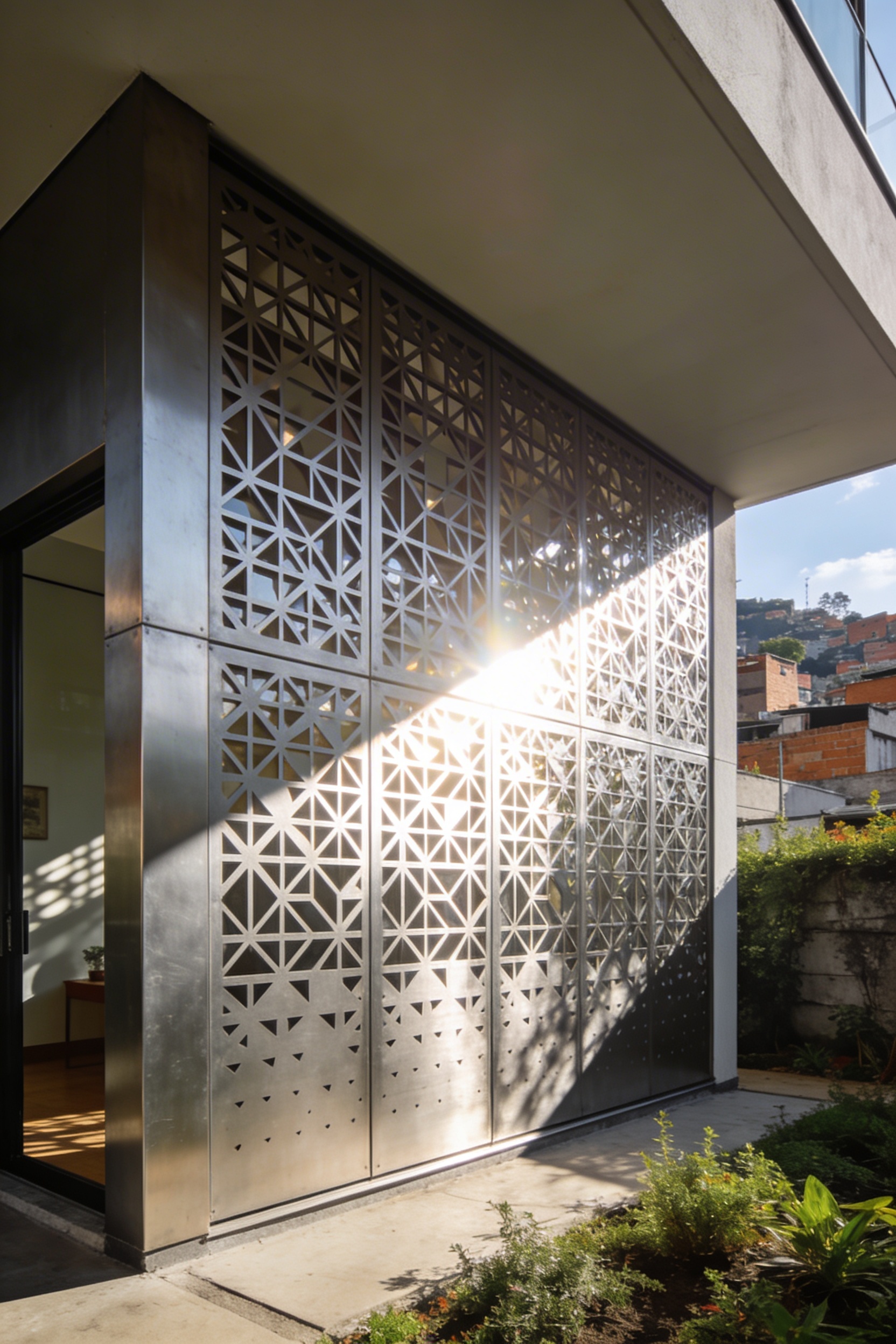 En Doblaser S.A.S ofrecemos asesoría, diseño y fabricación de fachadas bioclimáticas para edificios, desarrolladas para mejorar el confort térmico, la ventilación y el aprovechamiento de la luz natural en los espacios. Analizamos cada proyecto de forma personalizada para proponer soluciones eficientes que integren estética arquitectónica y funcionalidad. A partir del modelado y diseño técnico, fabricamos sistemas metálicos a medida, como paneles, celosías y elementos de control sola, utilizando procesos de corte láser y doblado de alta precisión, garantizando fachadas duraderas, eficientes y adaptadas a las necesidades del proyecto. 🏢🌿