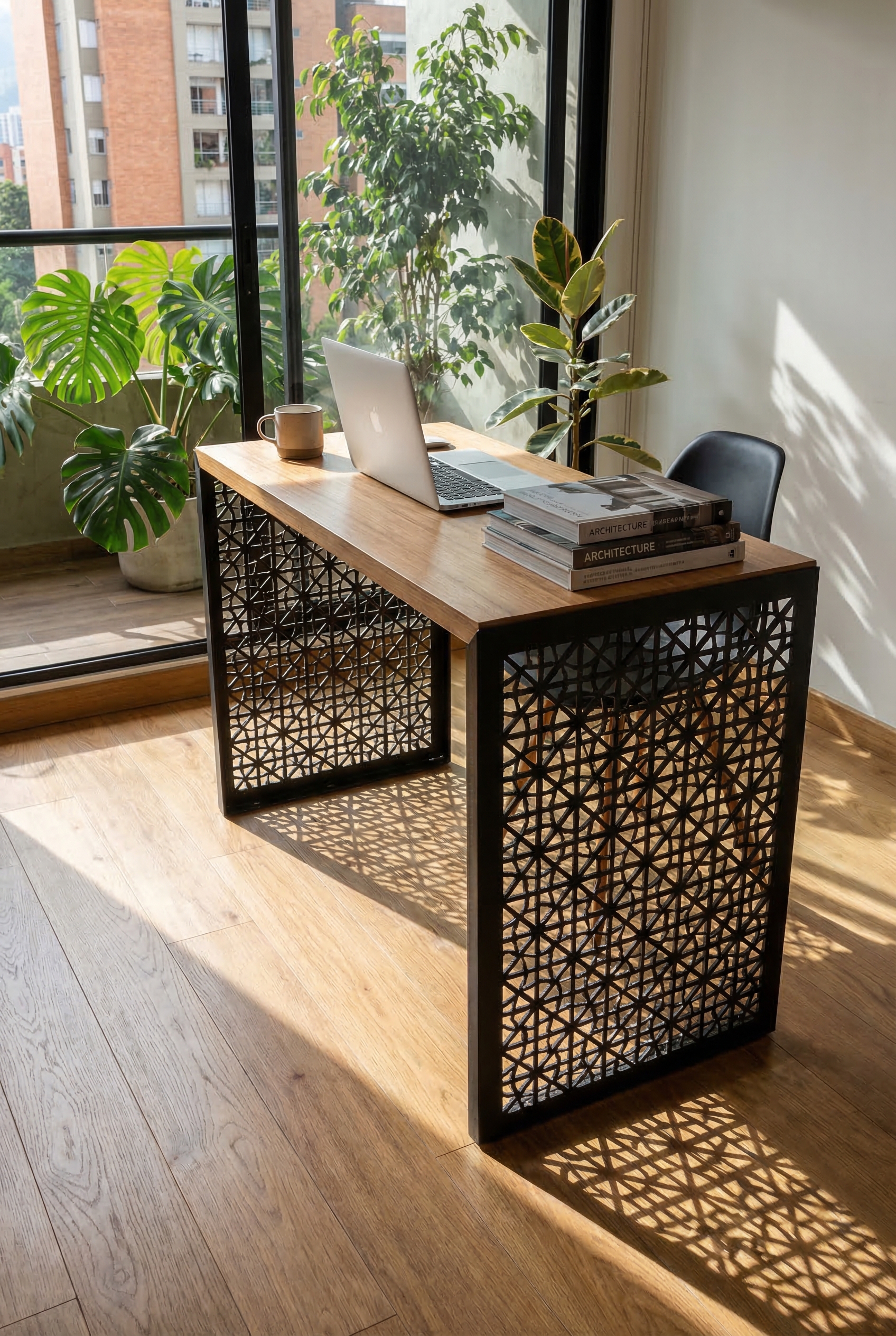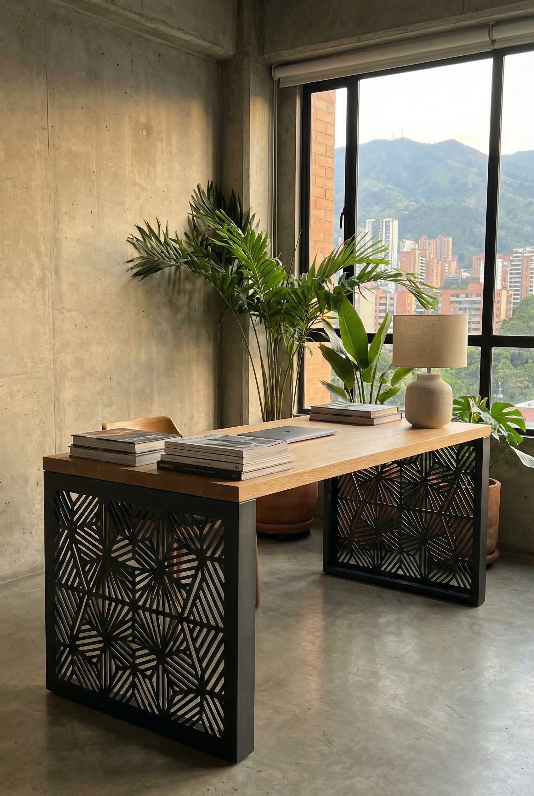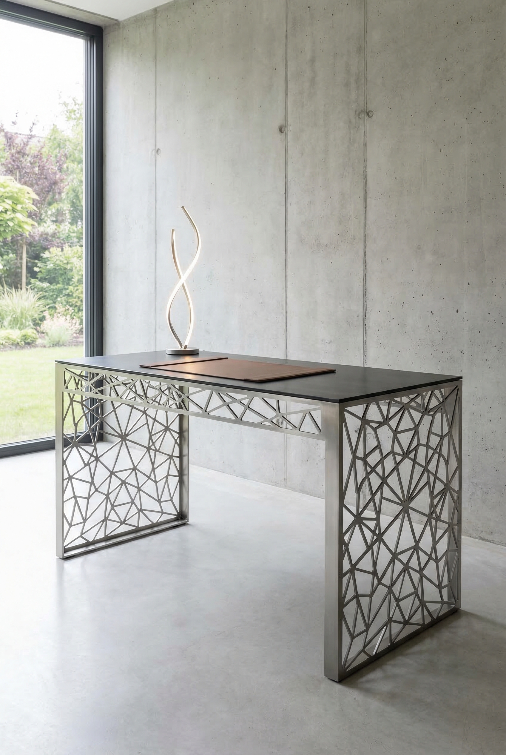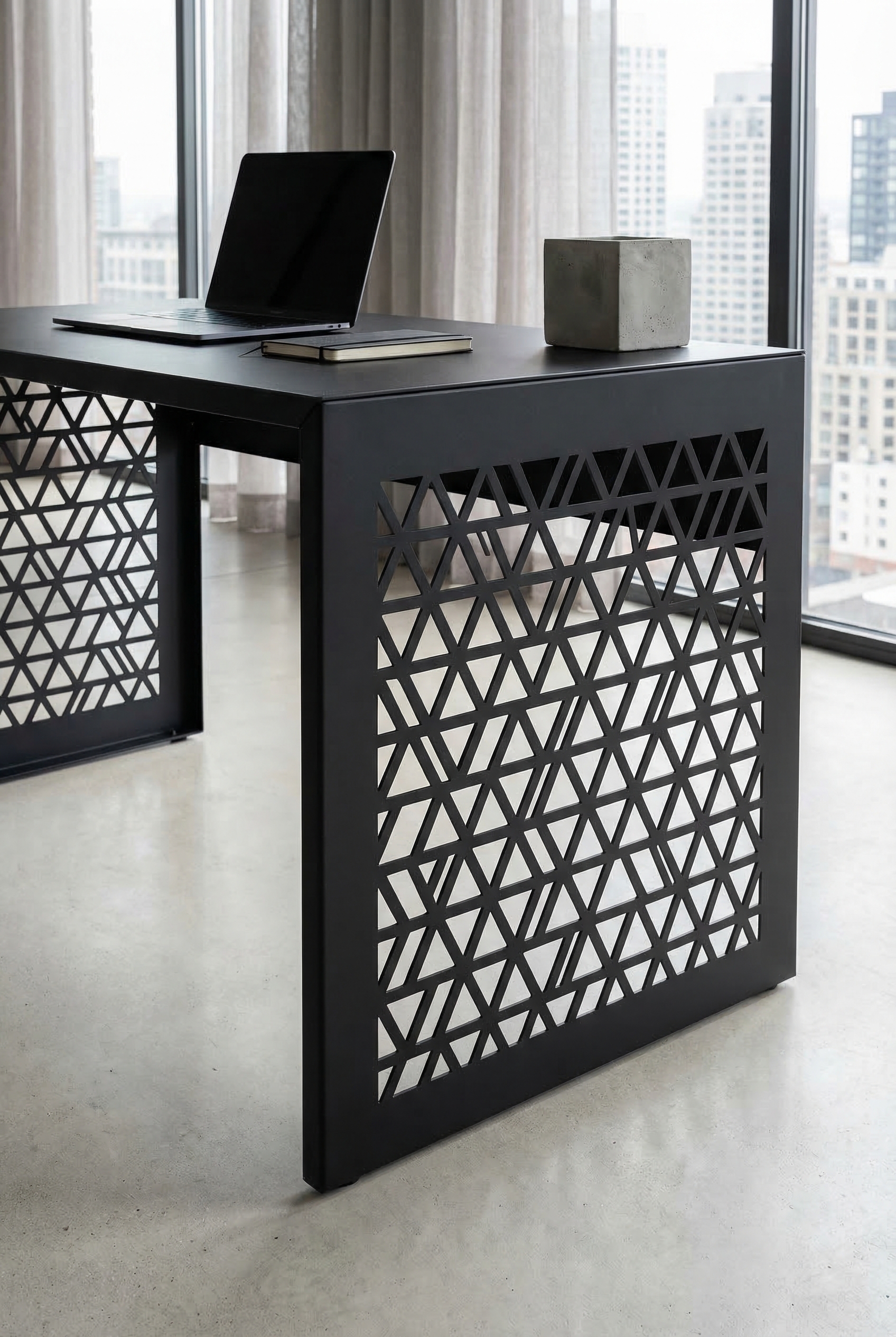 Nuestros escritorios combinan diseño minimalista, precisión industrial y elegancia contemporánea. Fabricados mediante corte láser y doblado de metal, cada pieza ofrece líneas limpias, estructuras sólidas y una estética moderna que se integra perfectamente en oficinas, estudios y espacios de trabajo en el hogar.