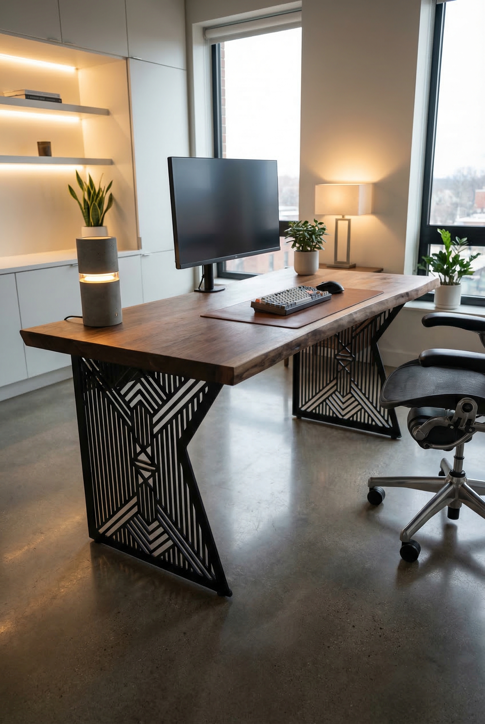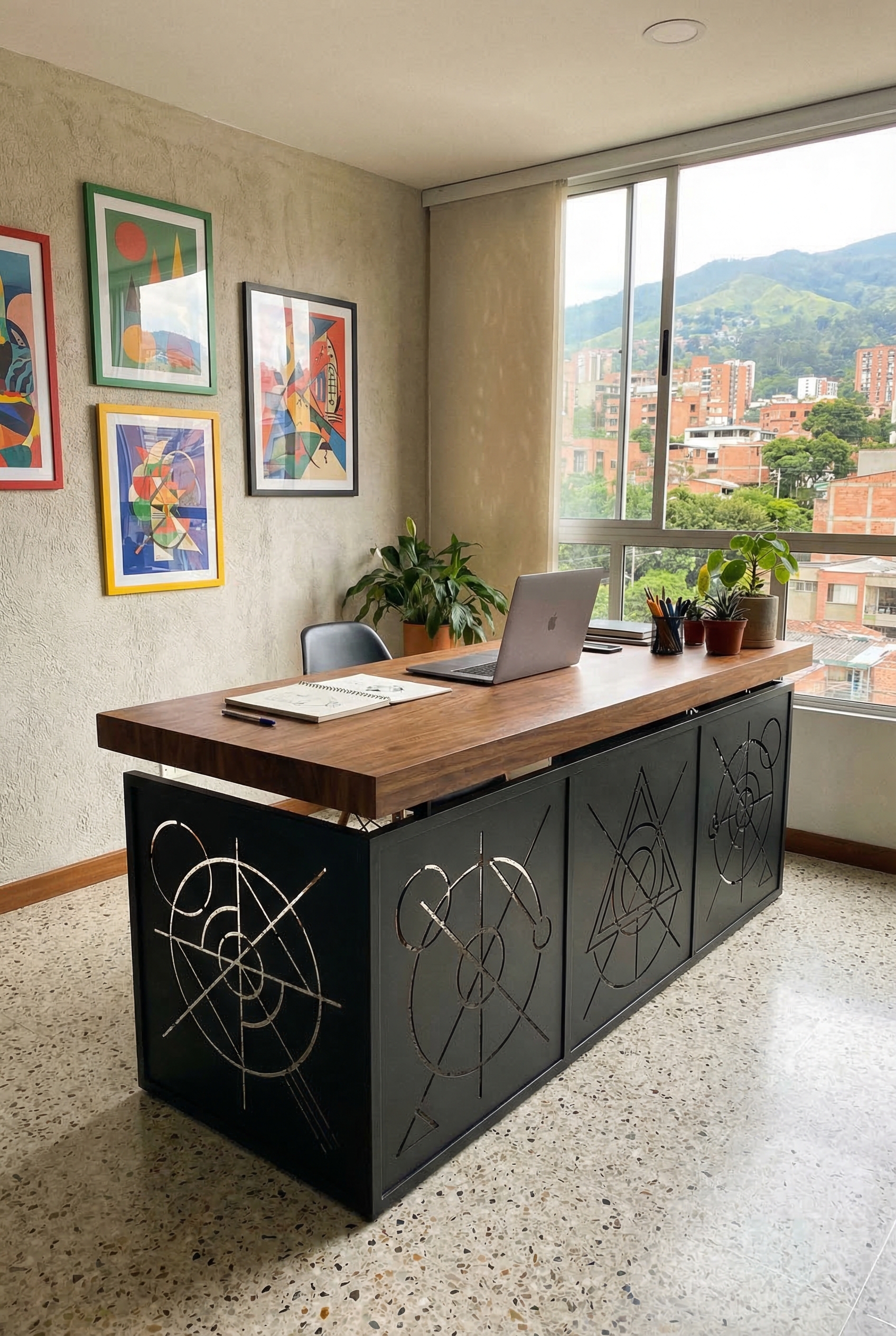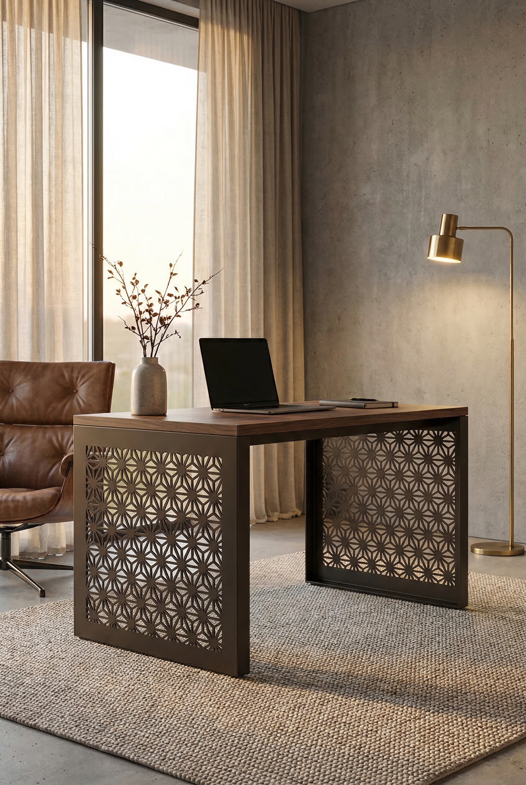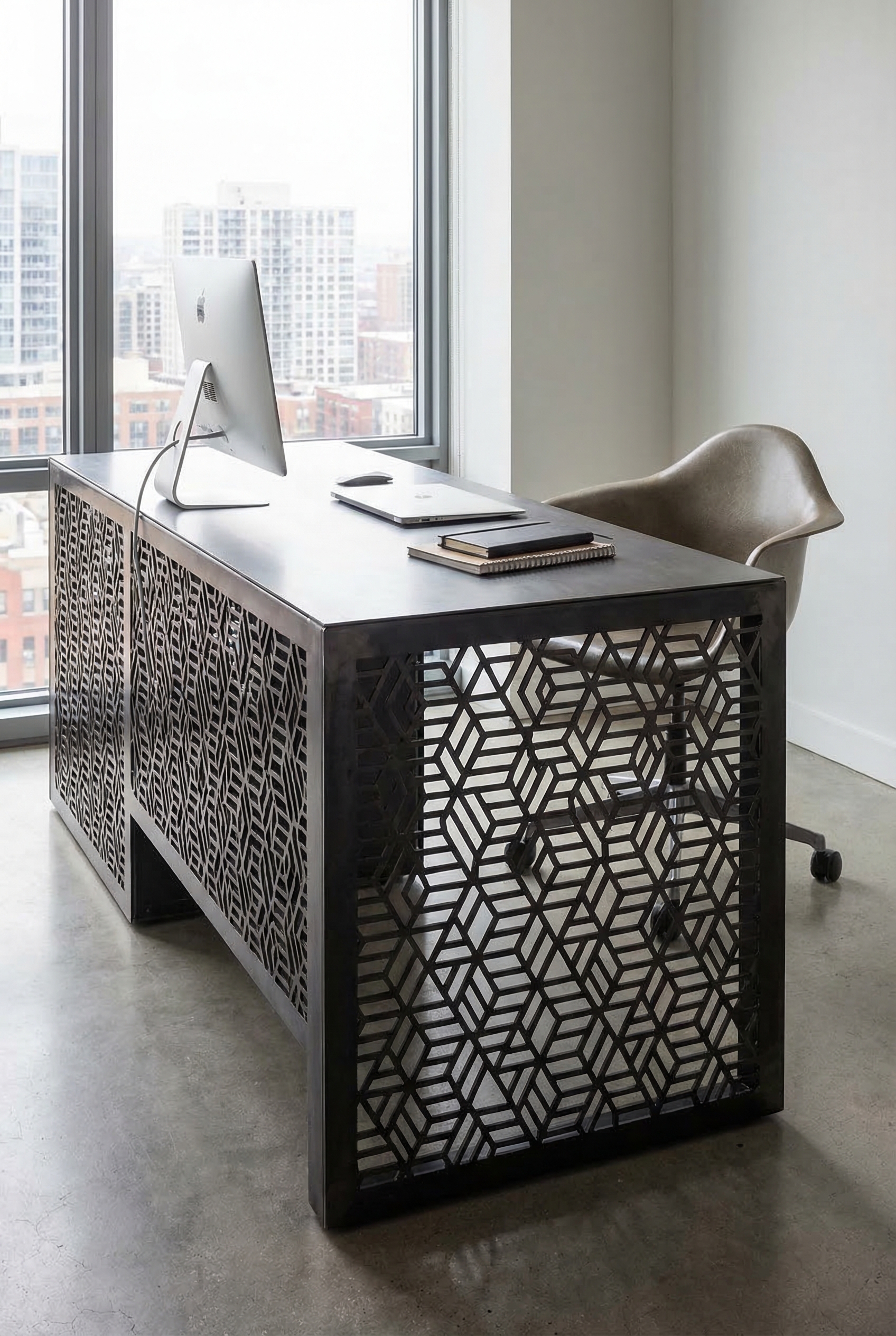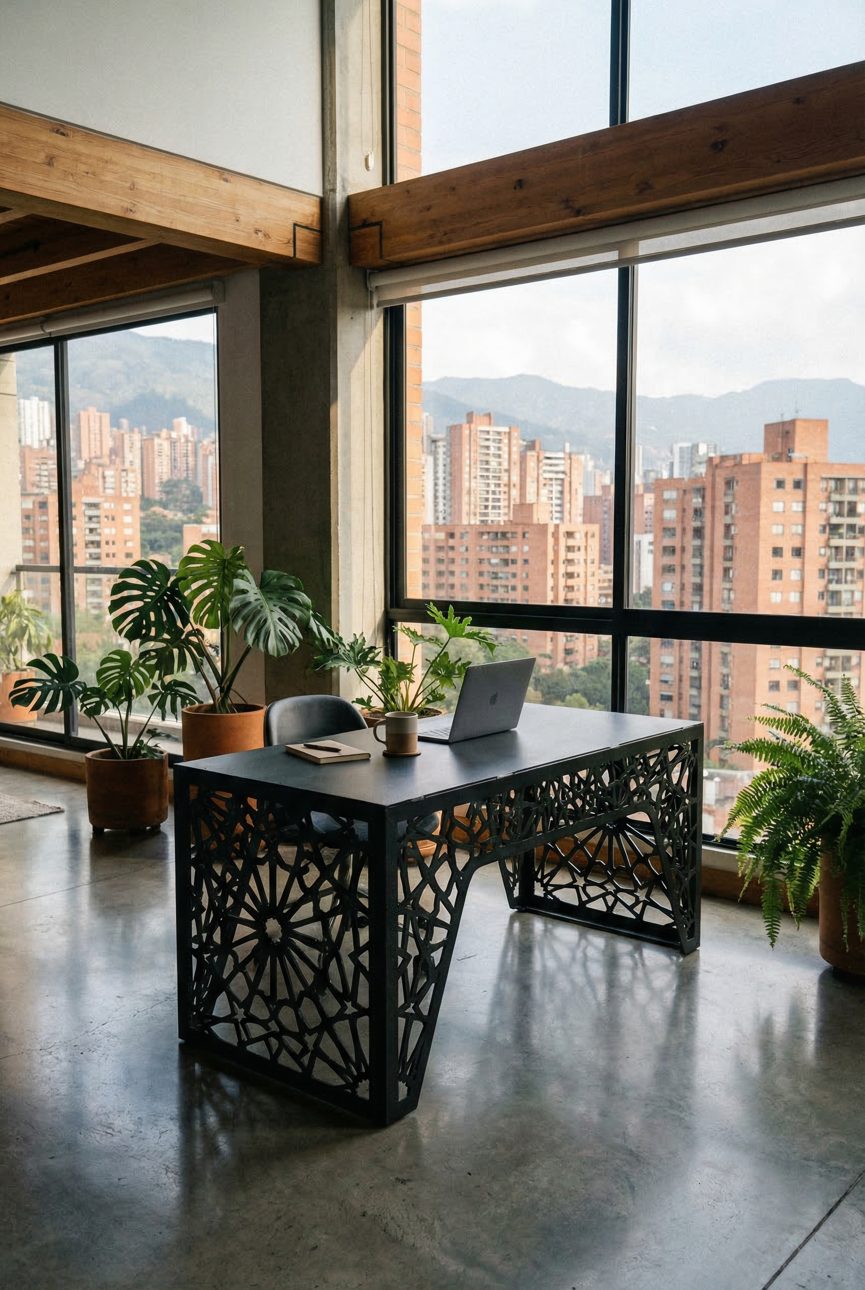 Nuestros escritorios combinan diseño minimalista, precisión industrial y elegancia contemporánea. Fabricados mediante corte láser y doblado de metal, cada pieza ofrece líneas limpias, estructuras sólidas y una estética moderna que se integra perfectamente en oficinas, estudios y espacios de trabajo en el hogar.