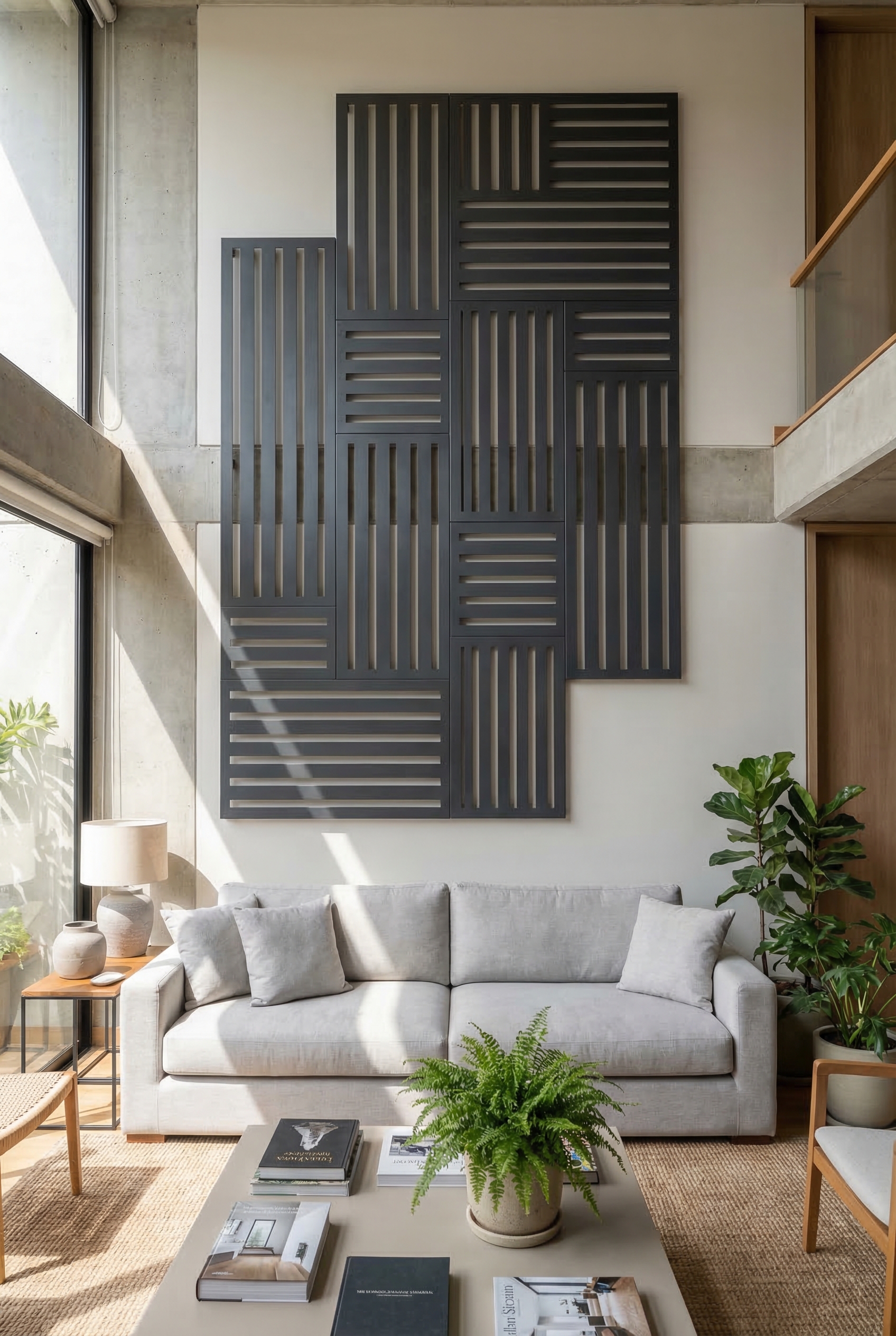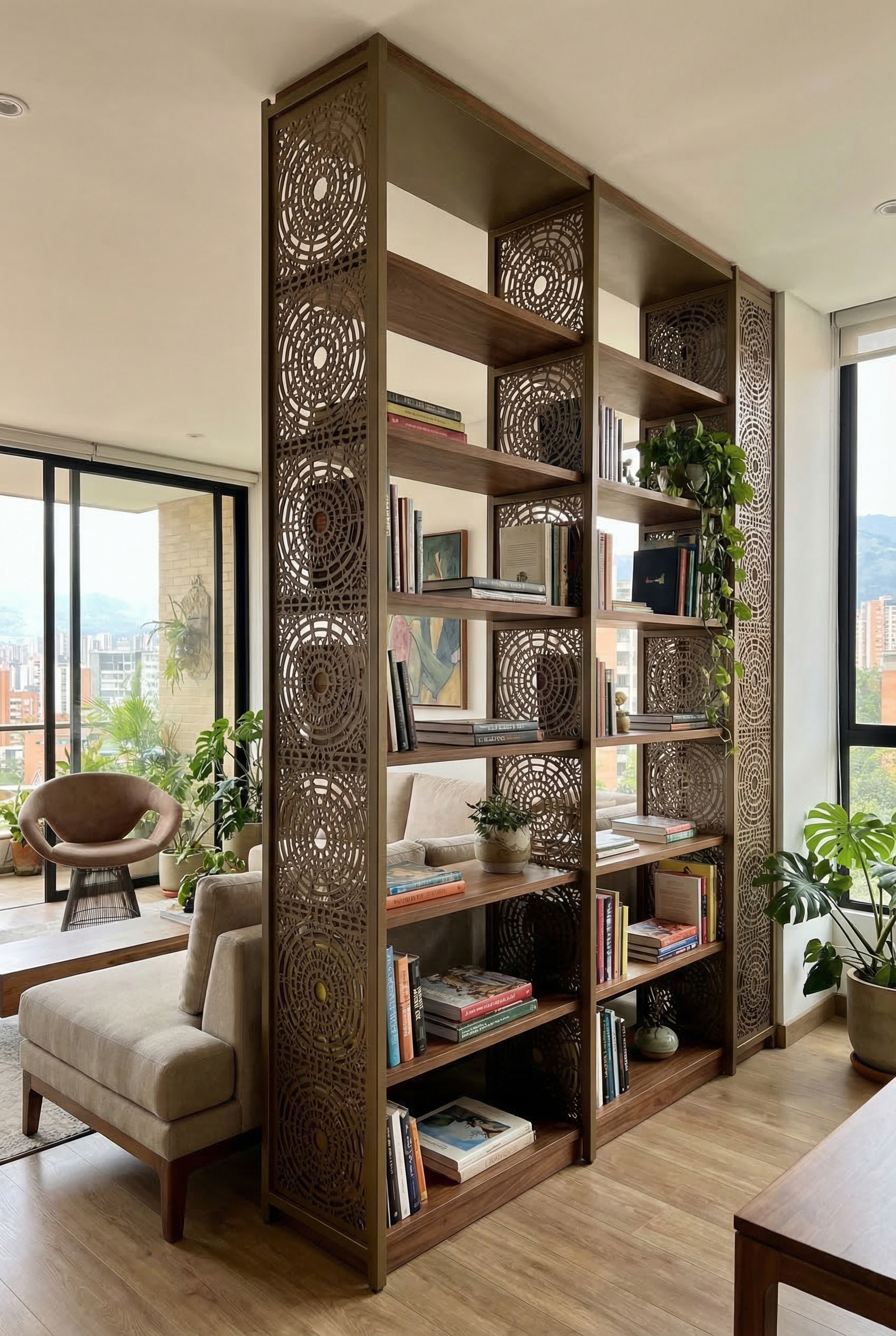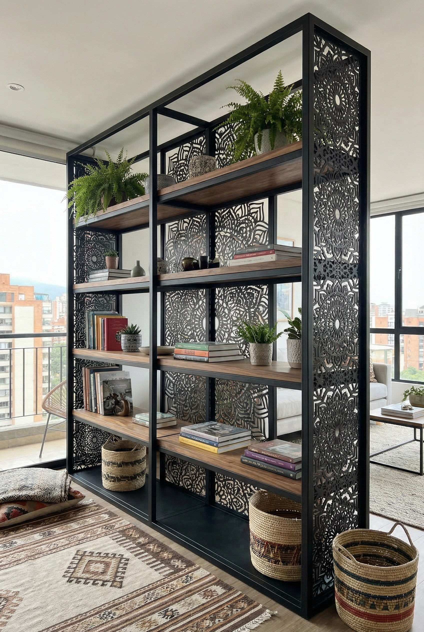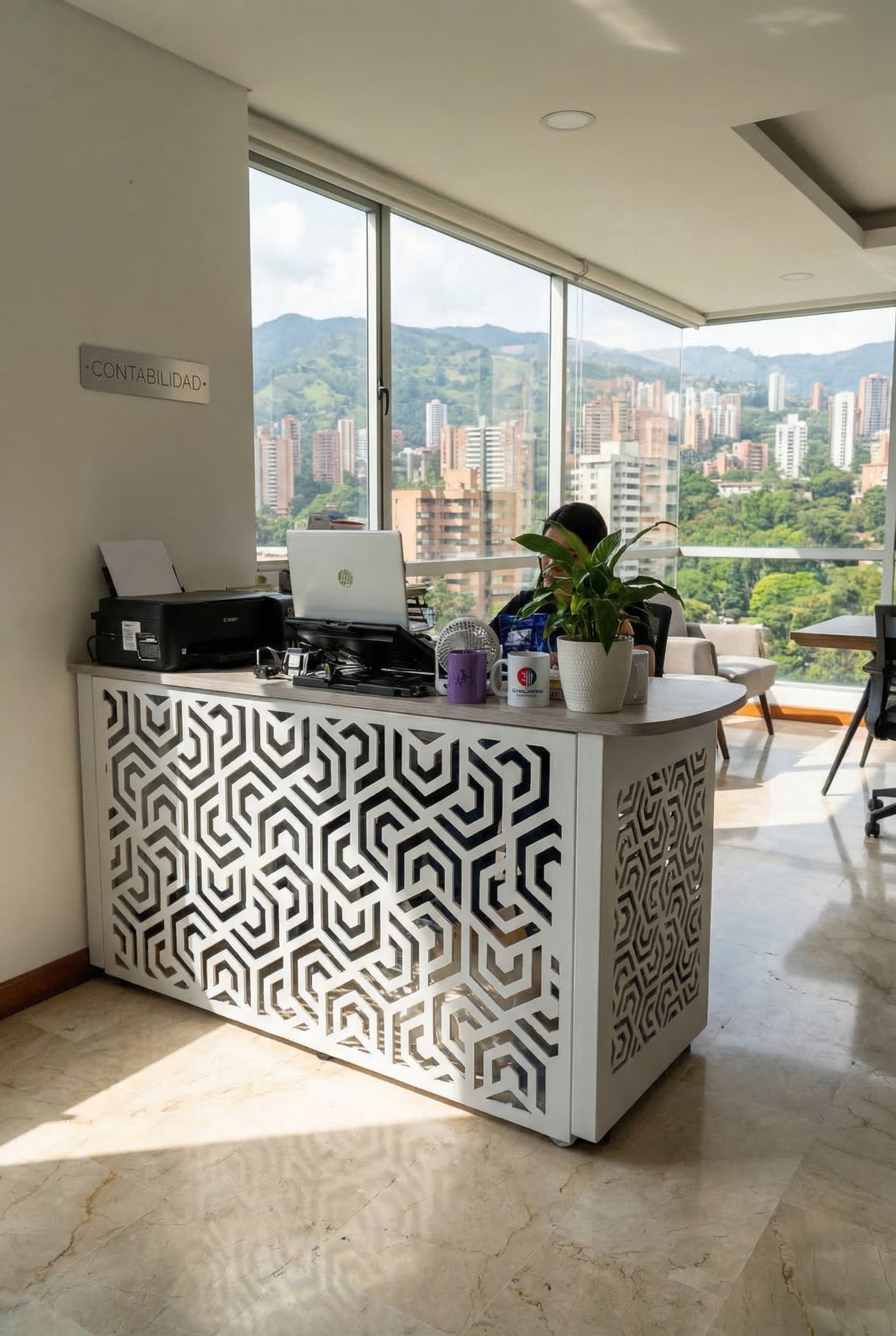 Los biombos y separadores metálicos permiten transformar los espacios sin necesidad de muros permanentes. Diseñamos y fabricamos paneles con patrones de corte láser únicos, inspirados en geometría, naturaleza y arte contemporáneo, que filtran la luz y crean juegos de sombras elegantes. Estas piezas funcionan como elementos arquitectónicos y decorativos que aportan identidad a hogares, oficinas, restaurantes y proyectos comerciales.