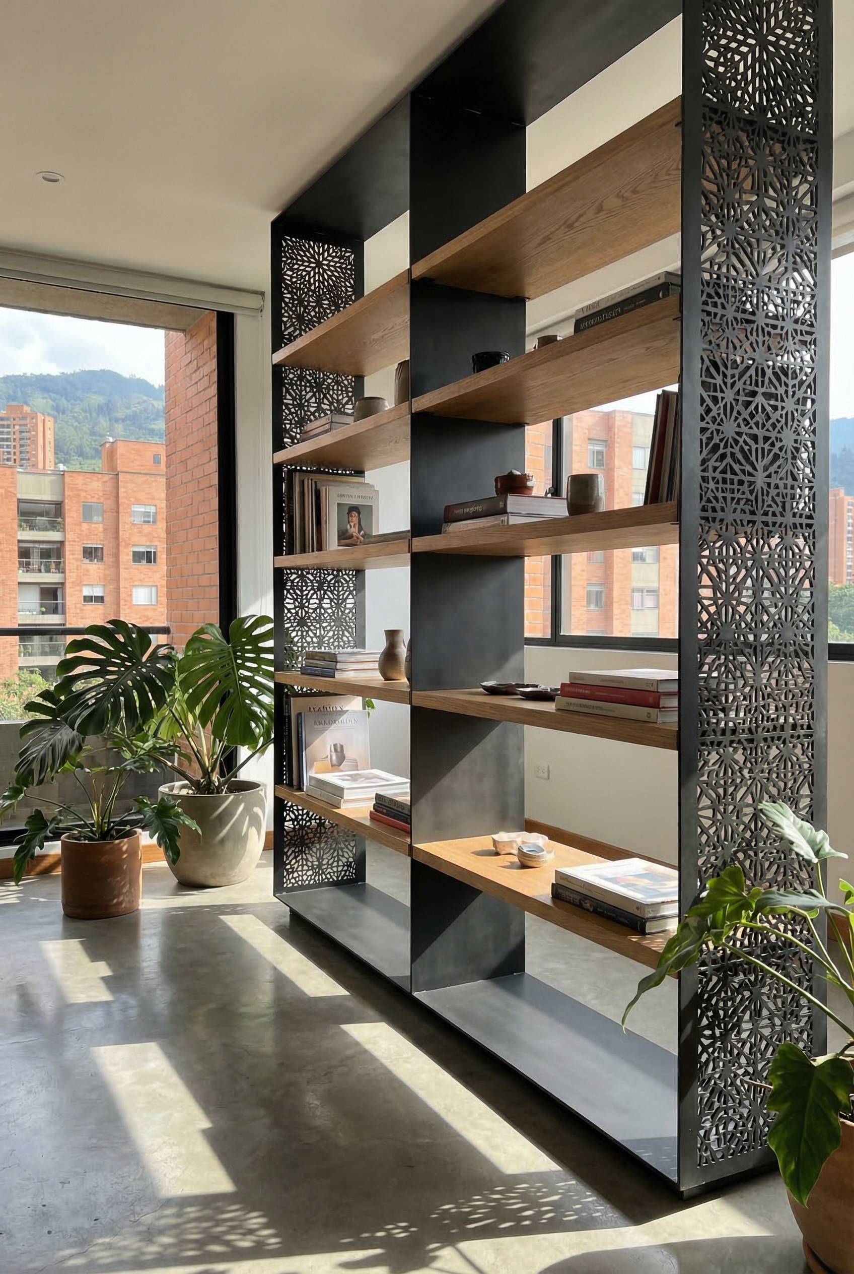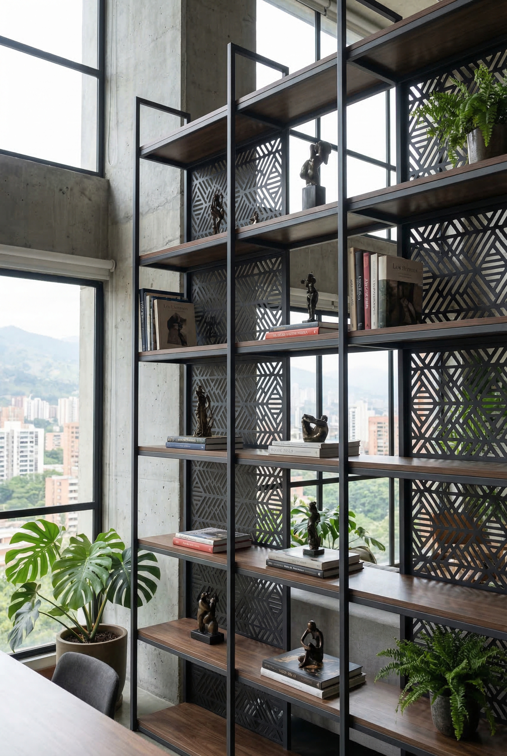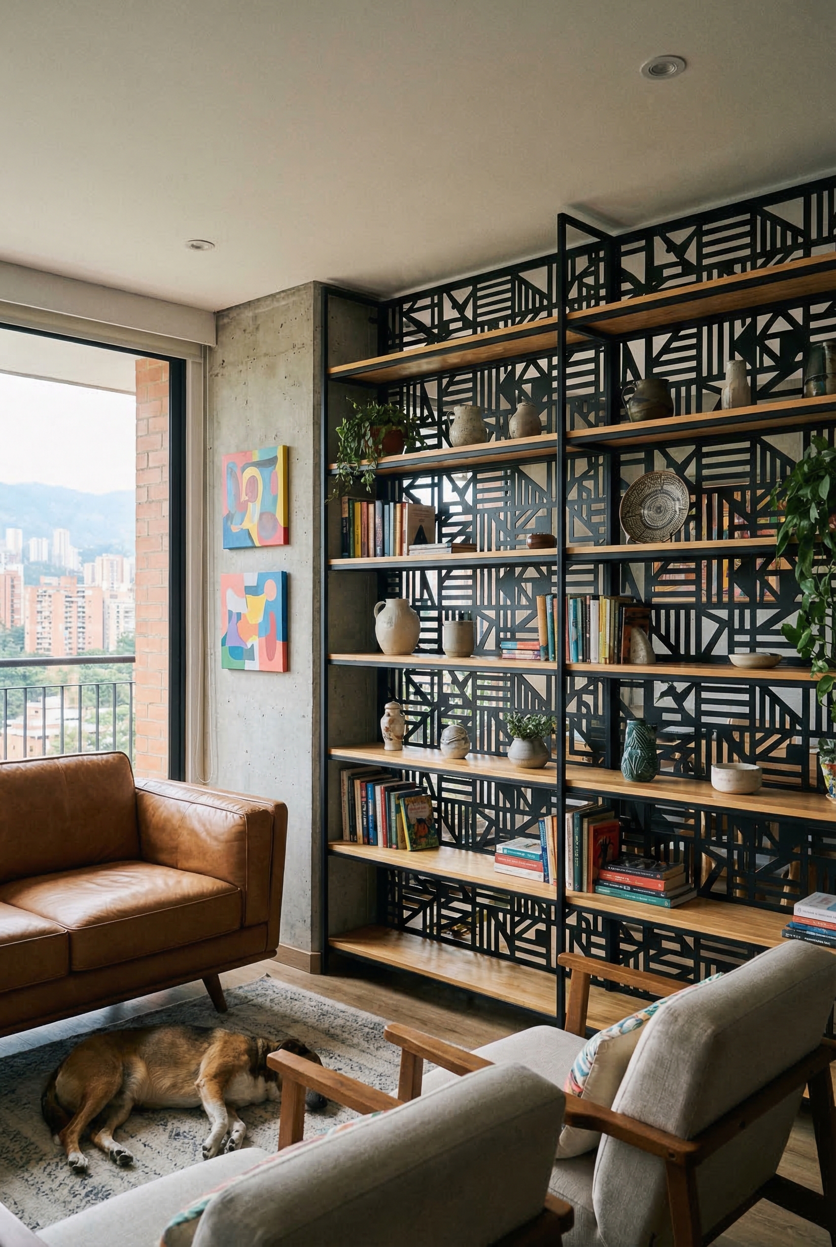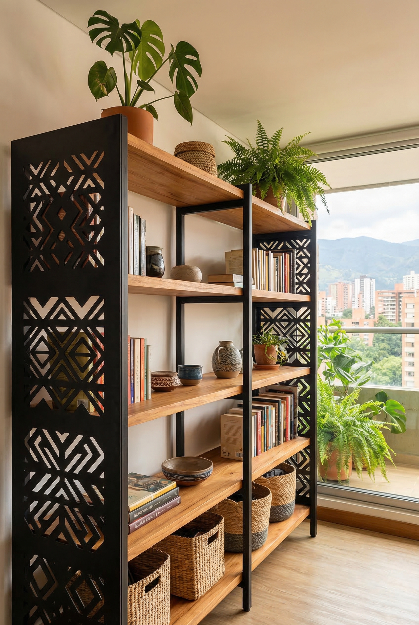Nuestras bibliotecas están diseñadas para transformar cualquier espacio en un ambiente sofisticado y organizado. Combinamos metal trabajado con precisión, madera y diseños de corte láser que aportan personalidad y carácter. Cada pieza busca equilibrar funcionalidad y estética, creando muebles ideales para libros, objetos decorativos y obras de arte, pensados para hogares modernos que valoran el diseño.