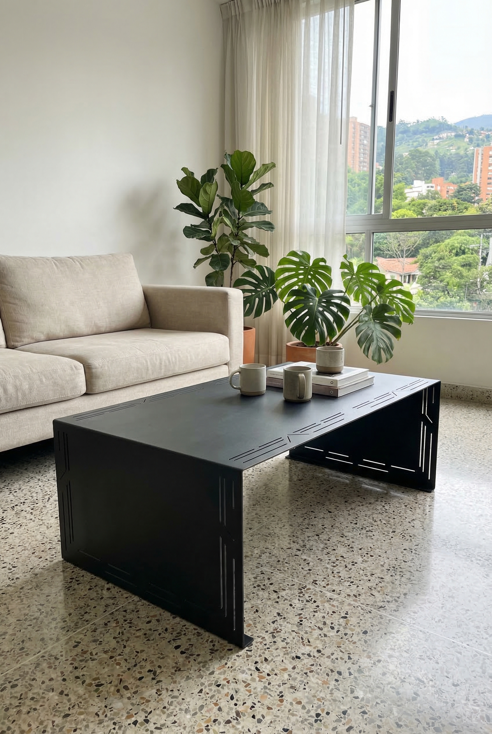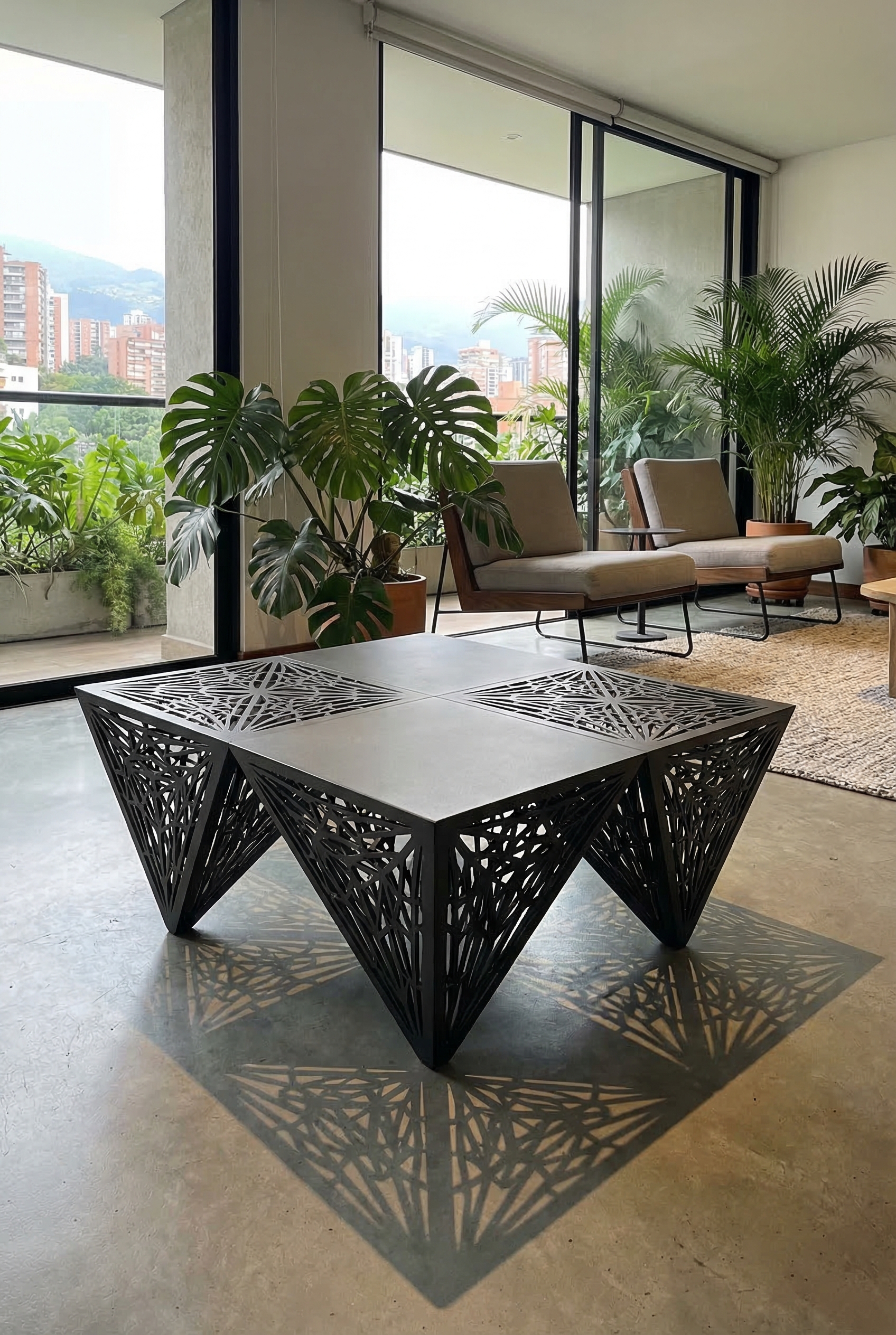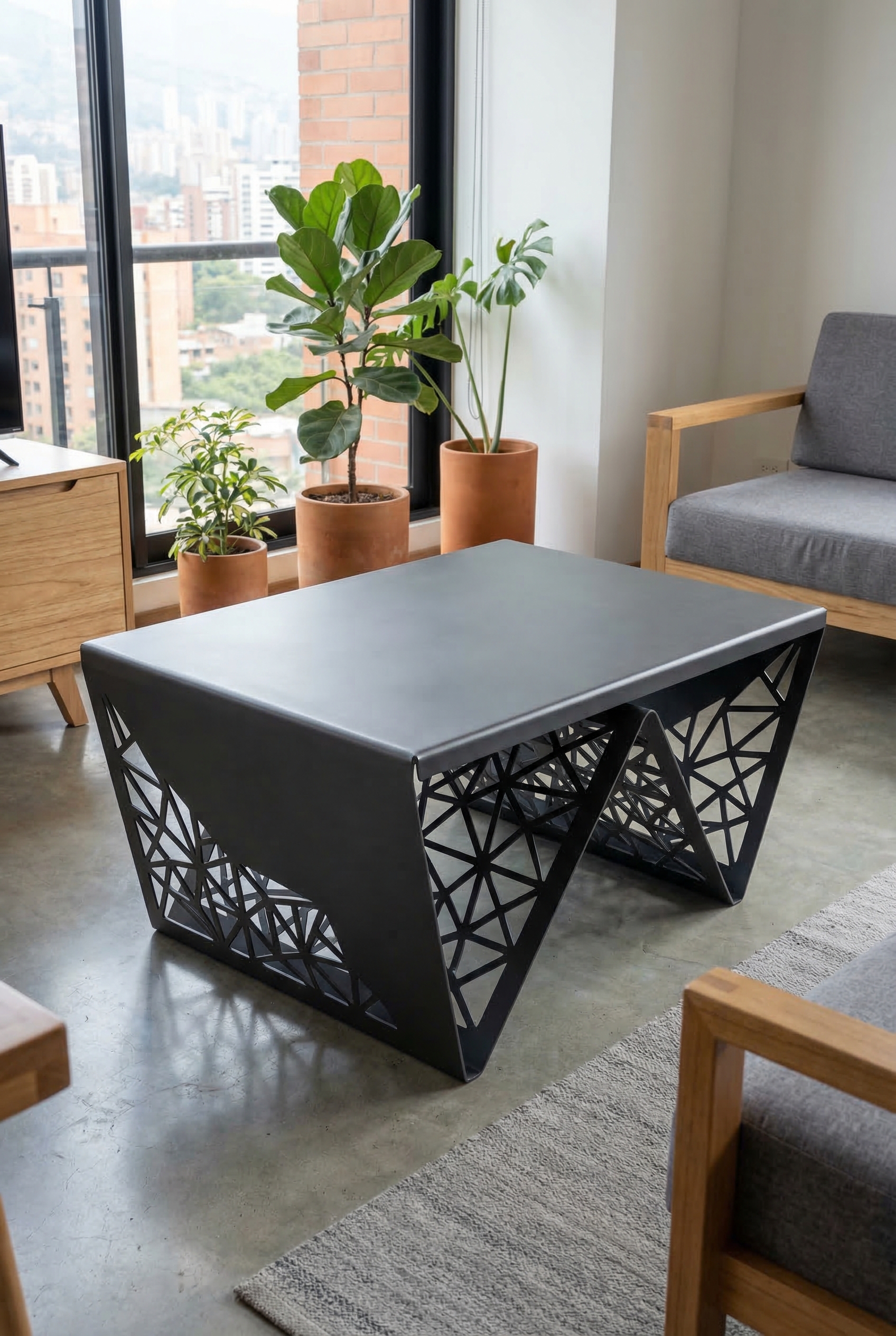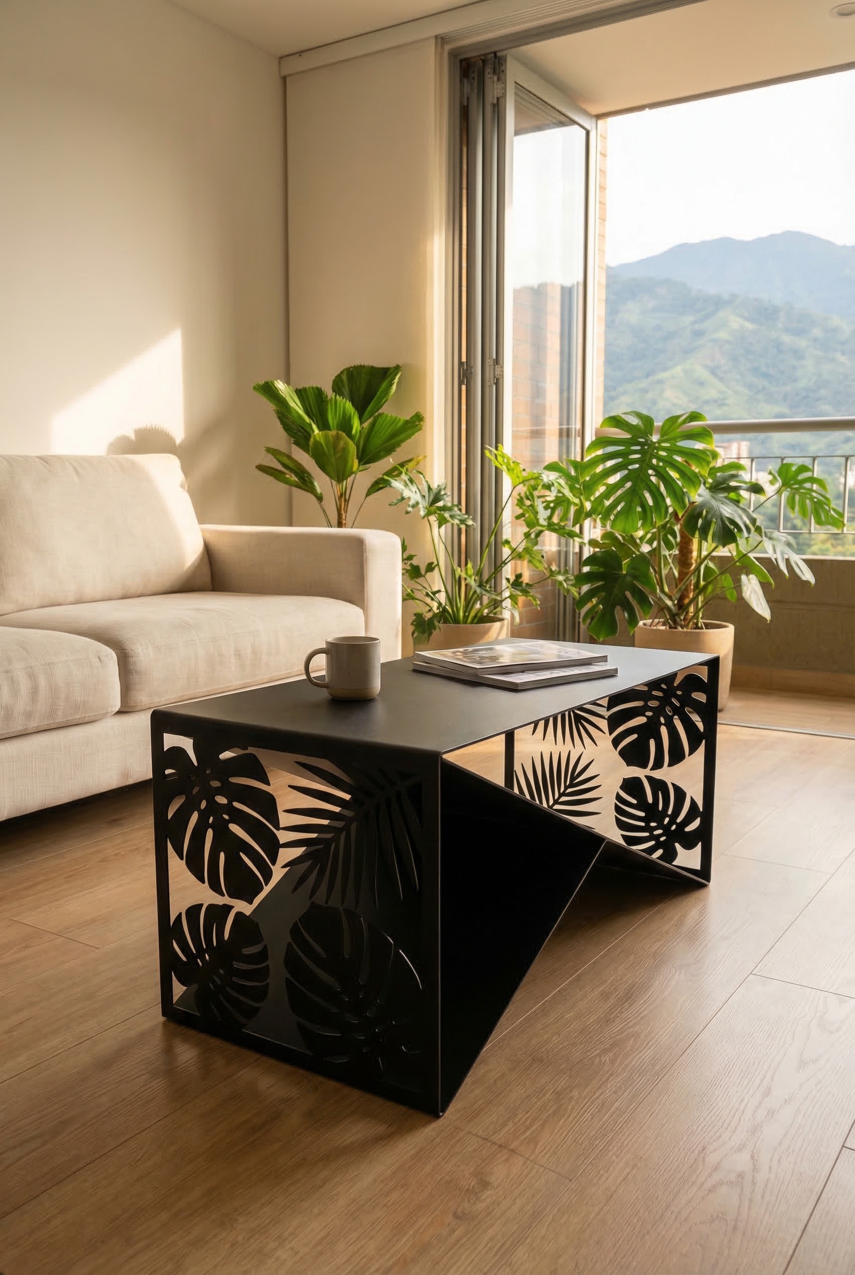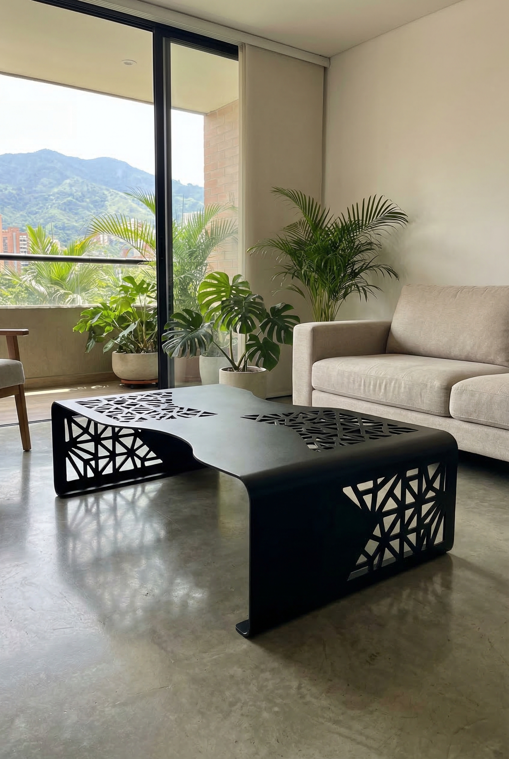 Nuestras mesas de centro están diseñadas para convertirse en el elemento protagonista de cualquier sala. Combinamos metal trabajado con precisión, diseños de corte láser y materiales como madera, vidrio o piedra para crear piezas elegantes y contemporáneas. Cada mesa es pensada como una obra funcional que aporta carácter al espacio, integrando geometría, arte y diseño moderno en ambientes sofisticados.