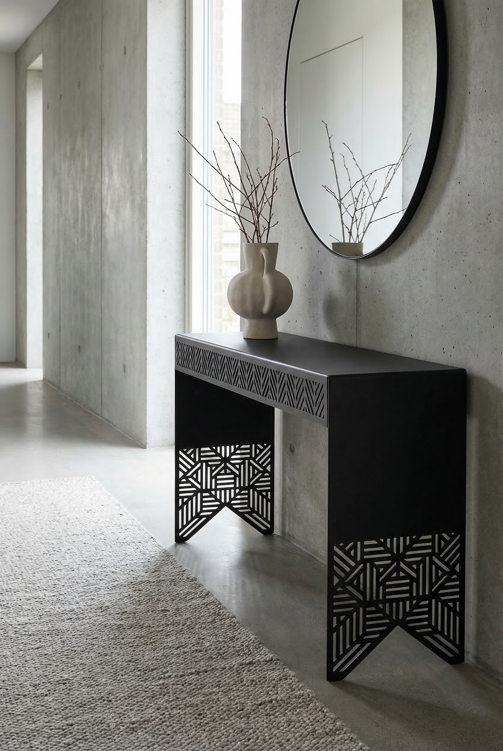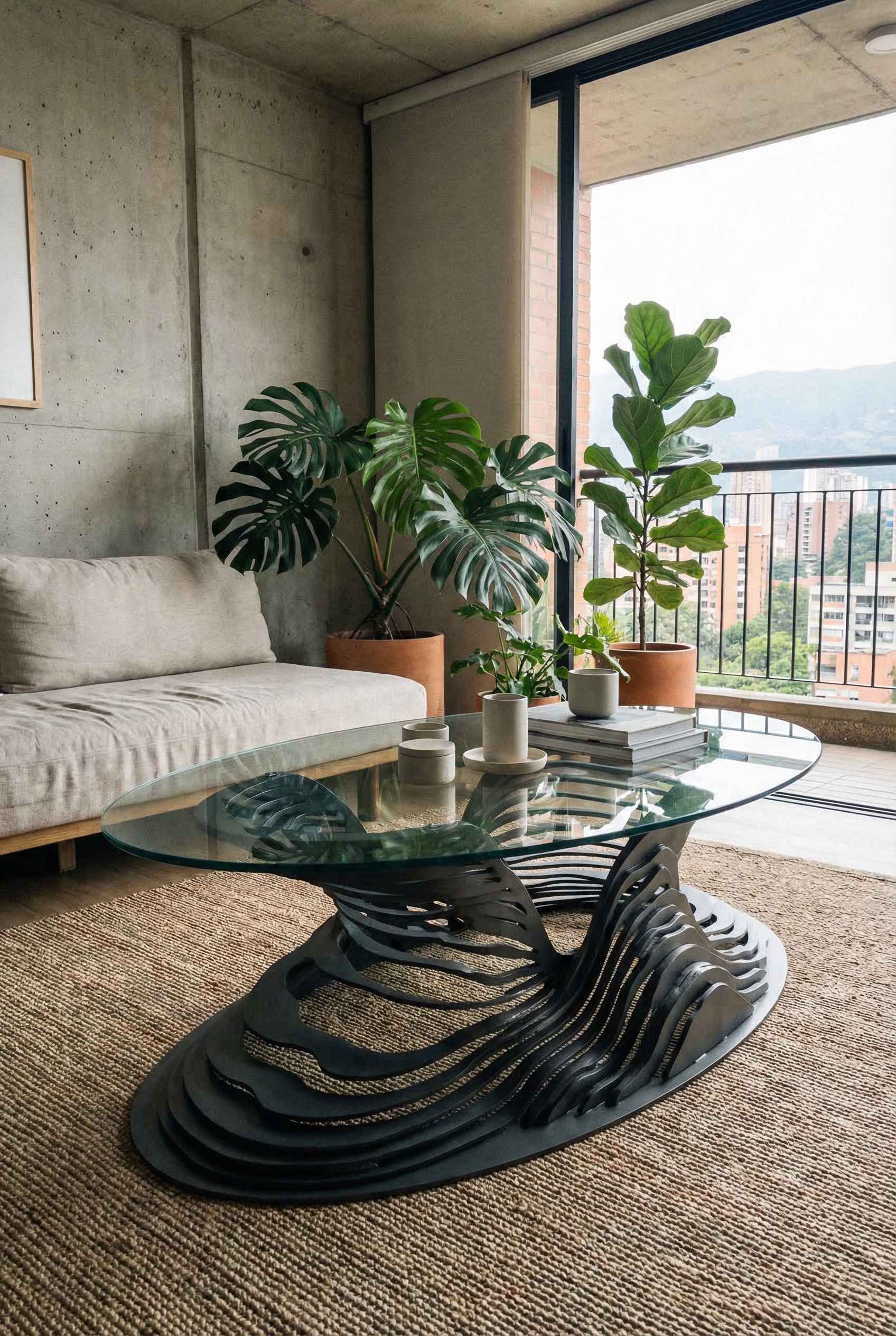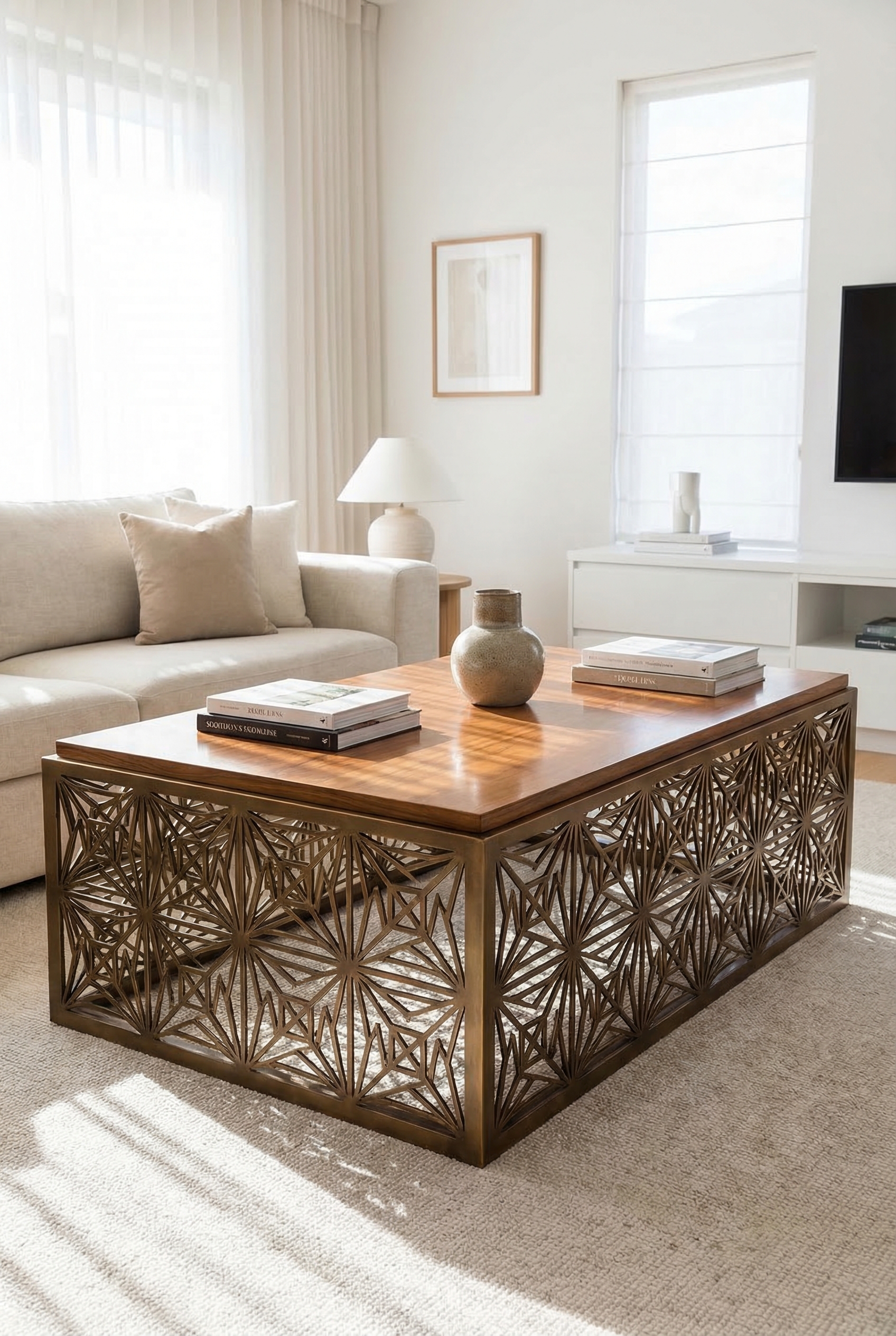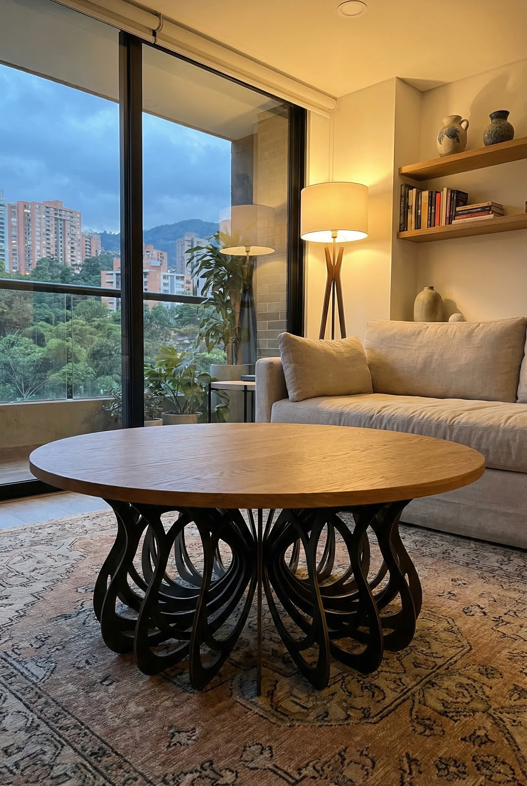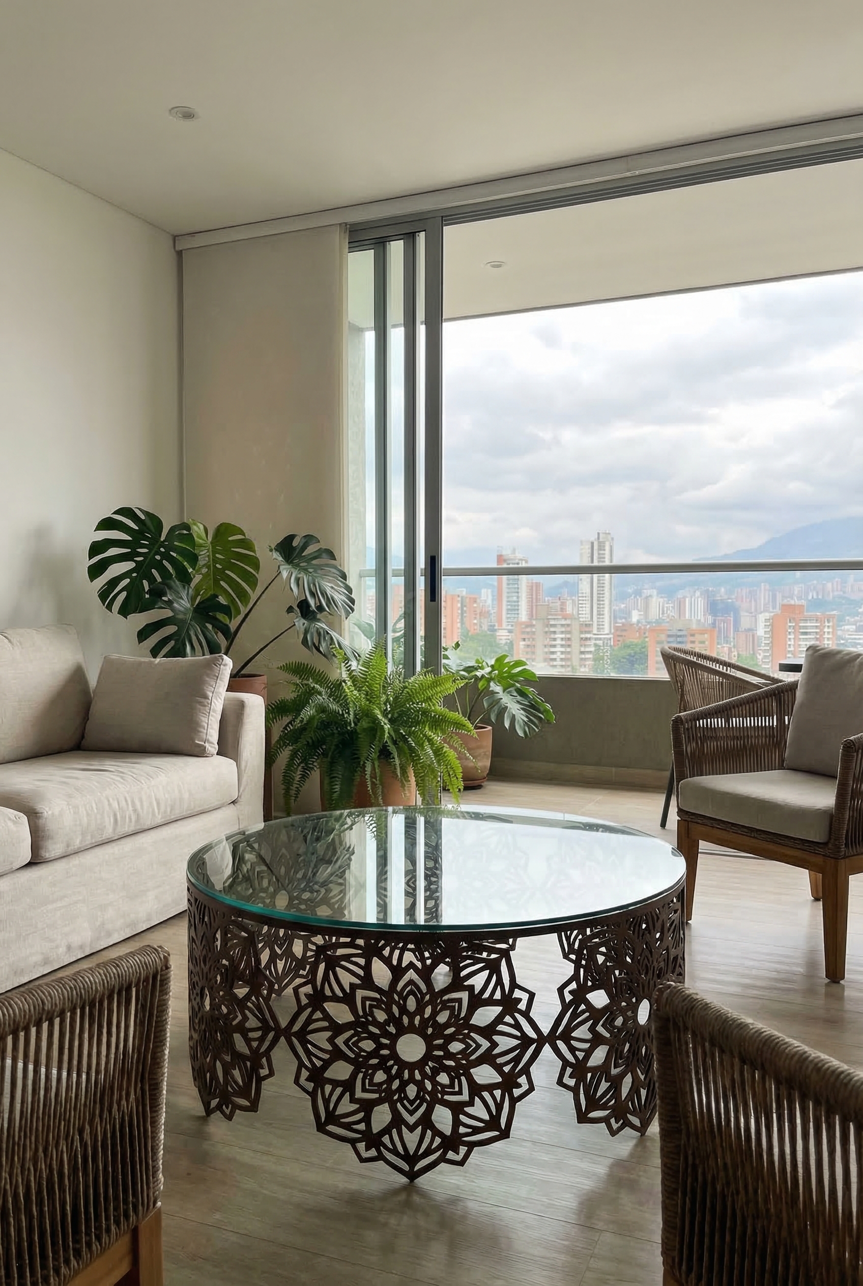 Nuestras mesas de centro están diseñadas para convertirse en el elemento protagonista de cualquier sala. Combinamos metal trabajado con precisión, diseños de corte láser y materiales como madera, vidrio o piedra para crear piezas elegantes y contemporáneas. Cada mesa es pensada como una obra funcional que aporta carácter al espacio, integrando geometría, arte y diseño moderno en ambientes sofisticados.