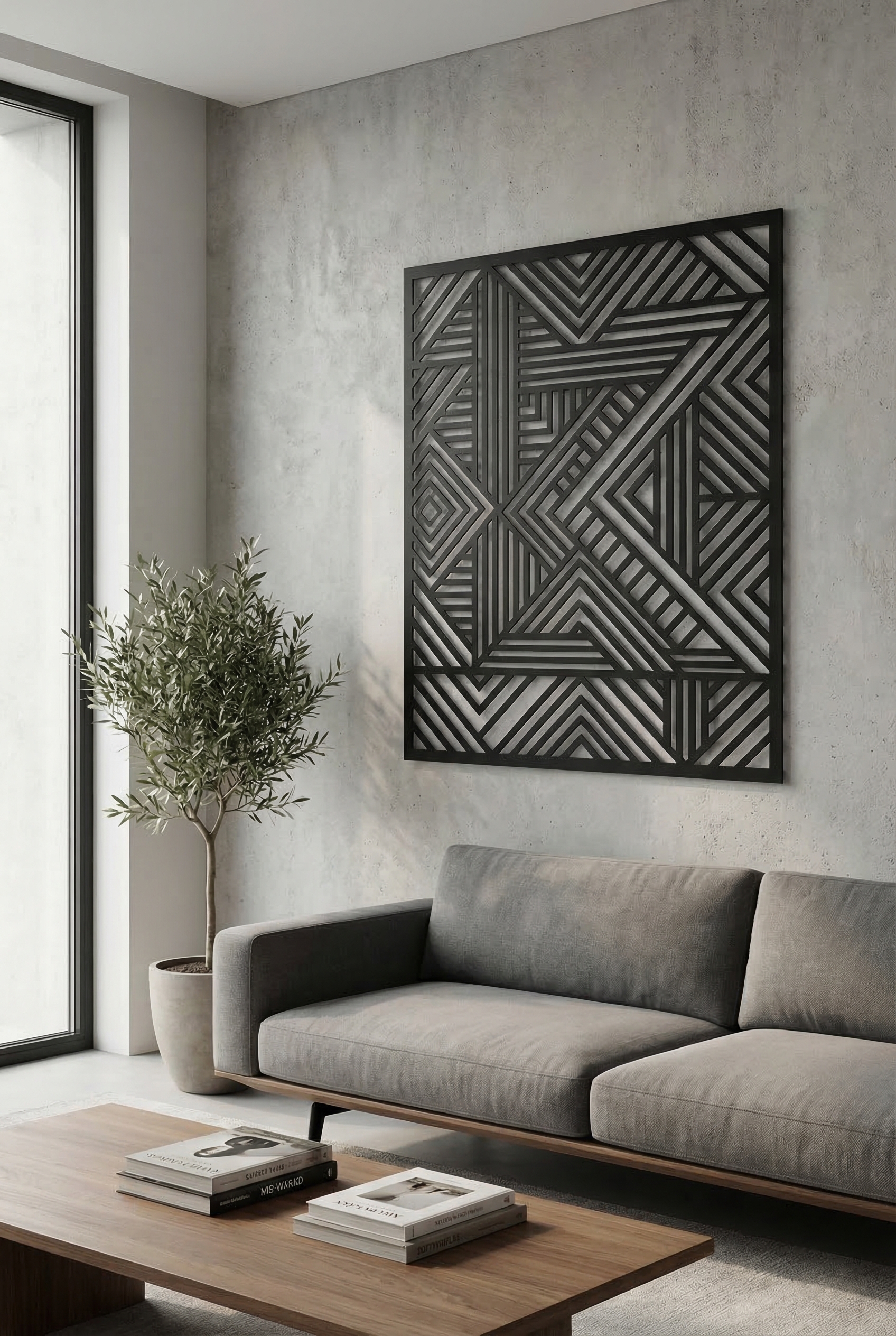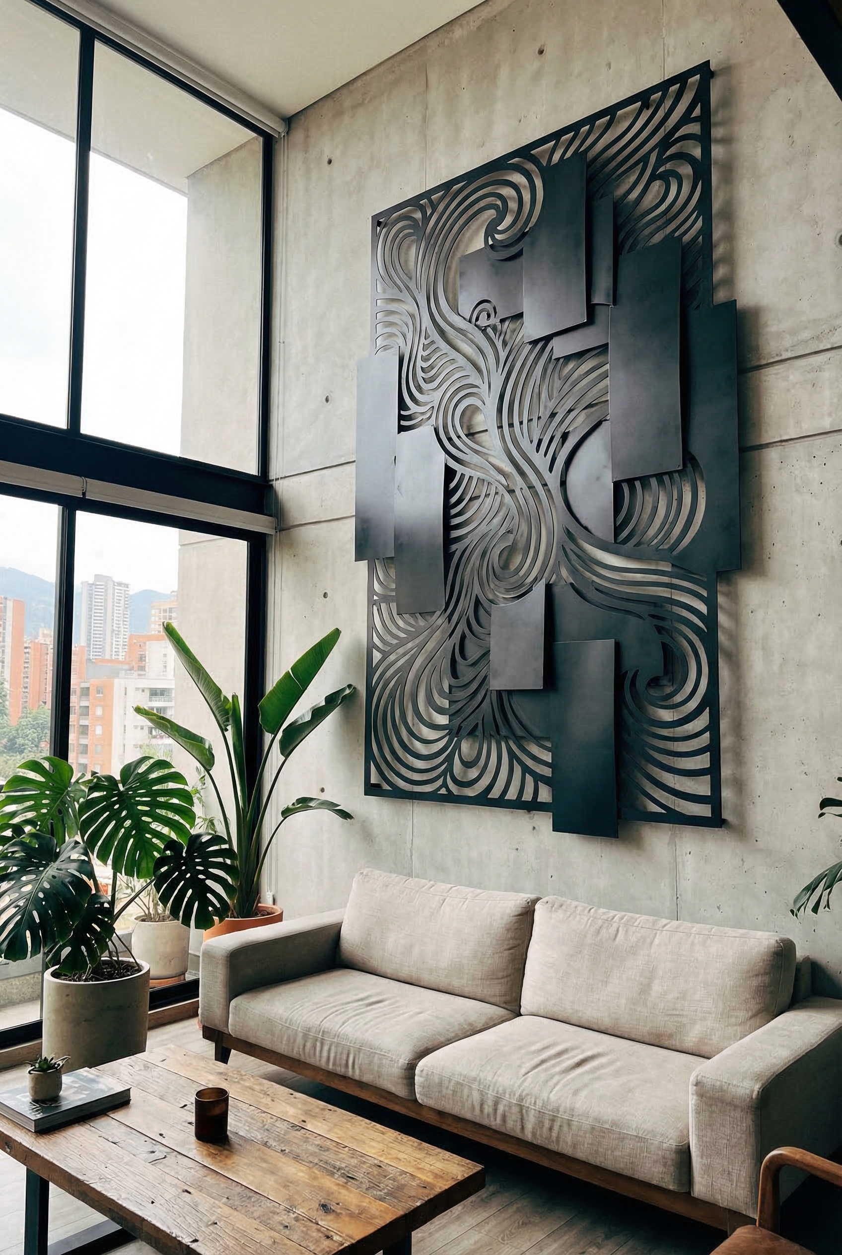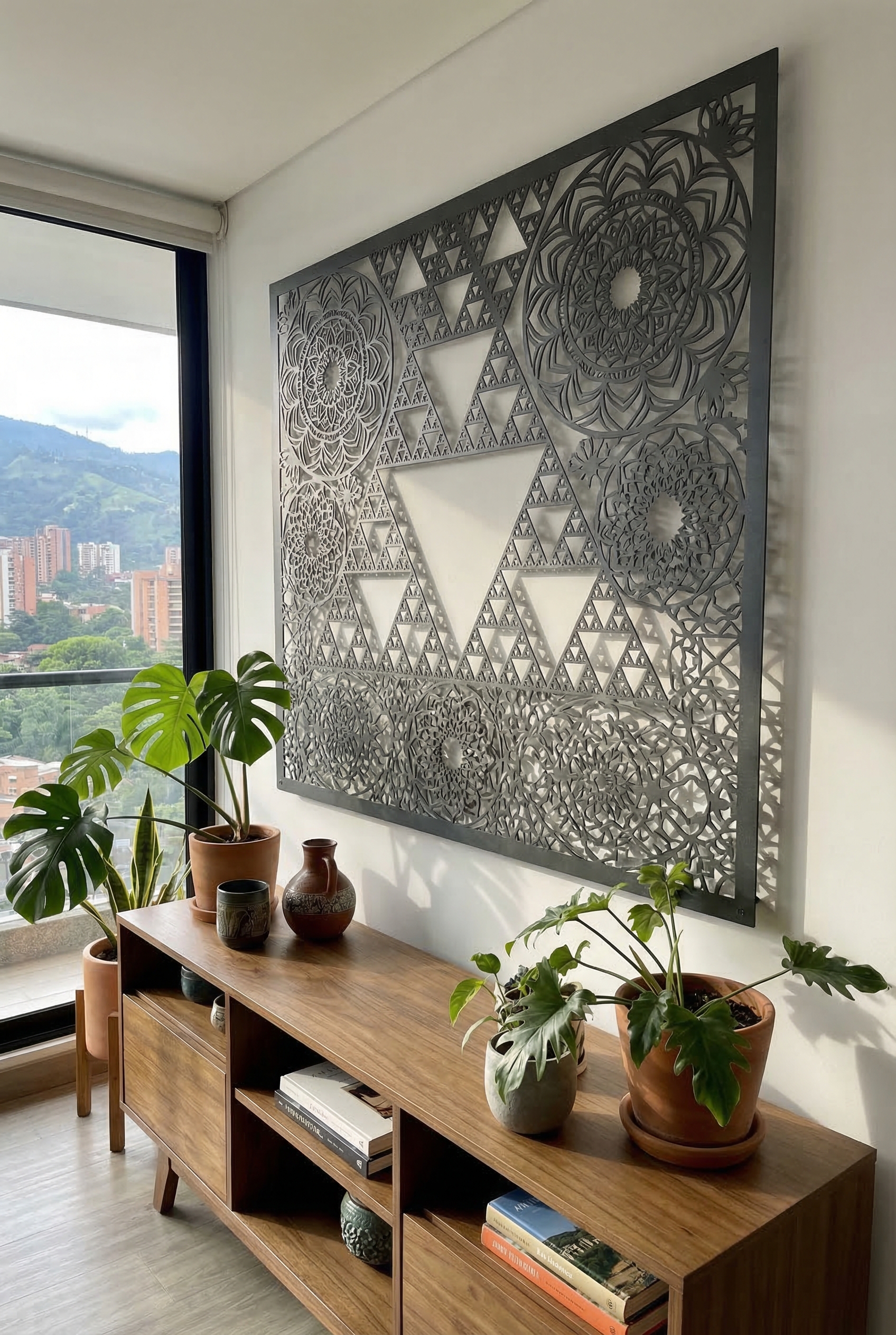 Las decoraciones metálicas para pared combinan diseño, arte y precisión técnica para crear piezas que se convierten en protagonistas del espacio. Mediante corte láser de alta precisión desarrollamos mandalas, composiciones geométricas, arte abstracto, patrones orgánicos y figuras arquitectónicas que aportan profundidad, textura y carácter a interiores modernos. Cada pieza está pensada para integrarse en hogares, oficinas o espacios comerciales como un elemento artístico duradero y elegante.