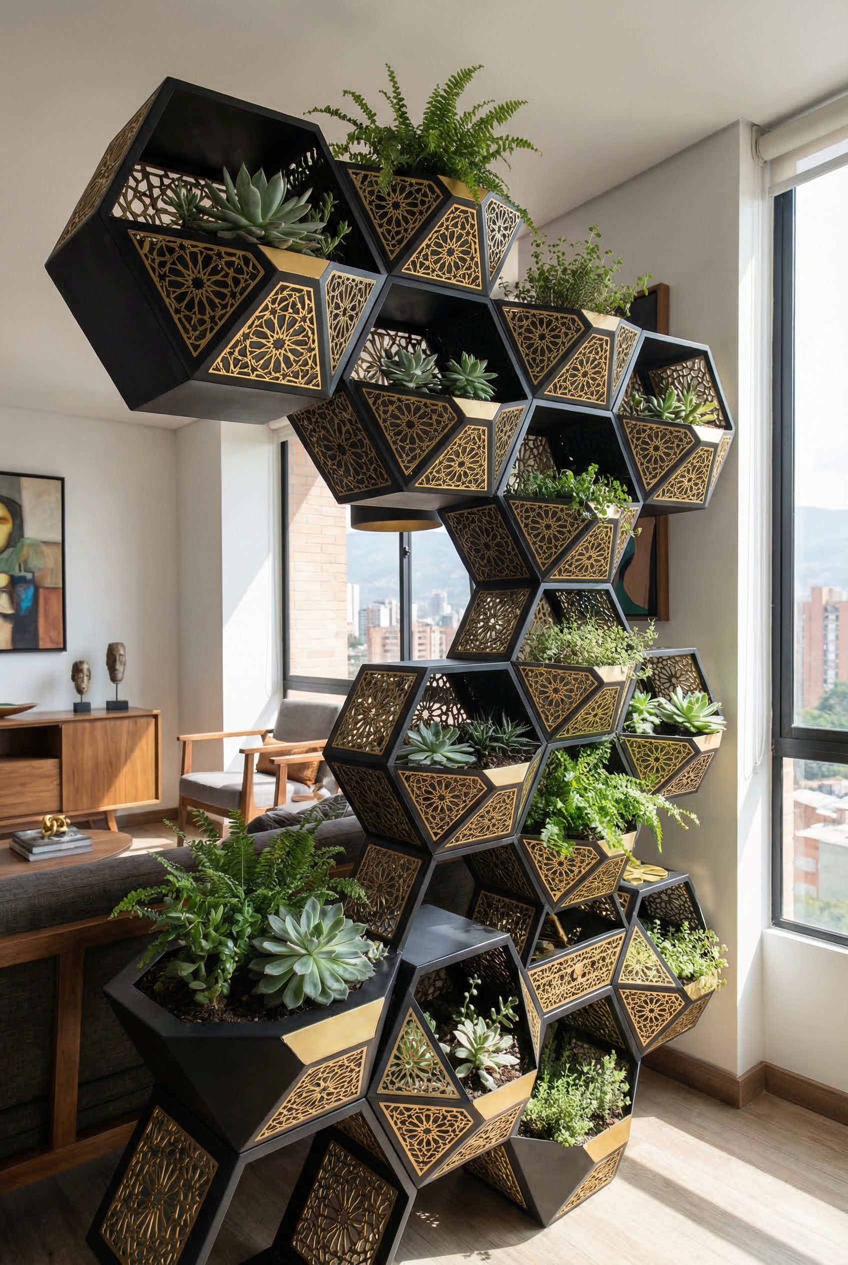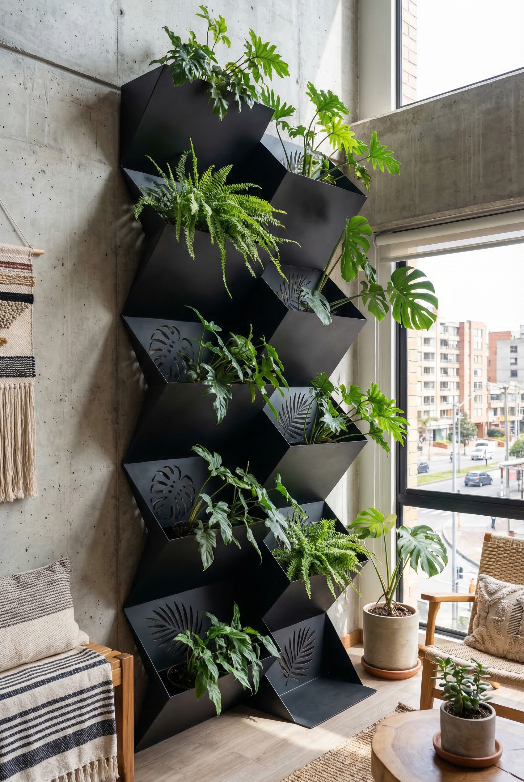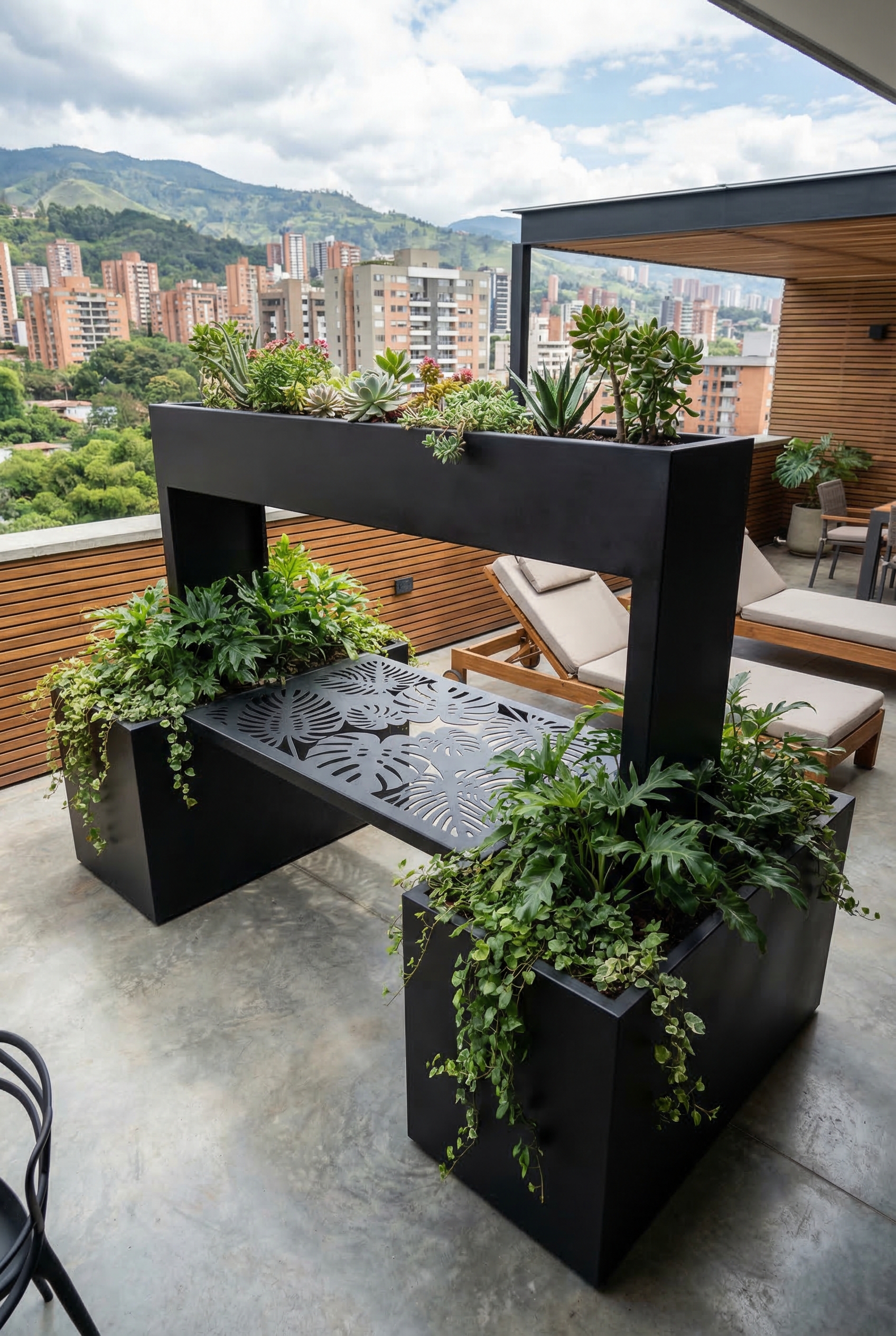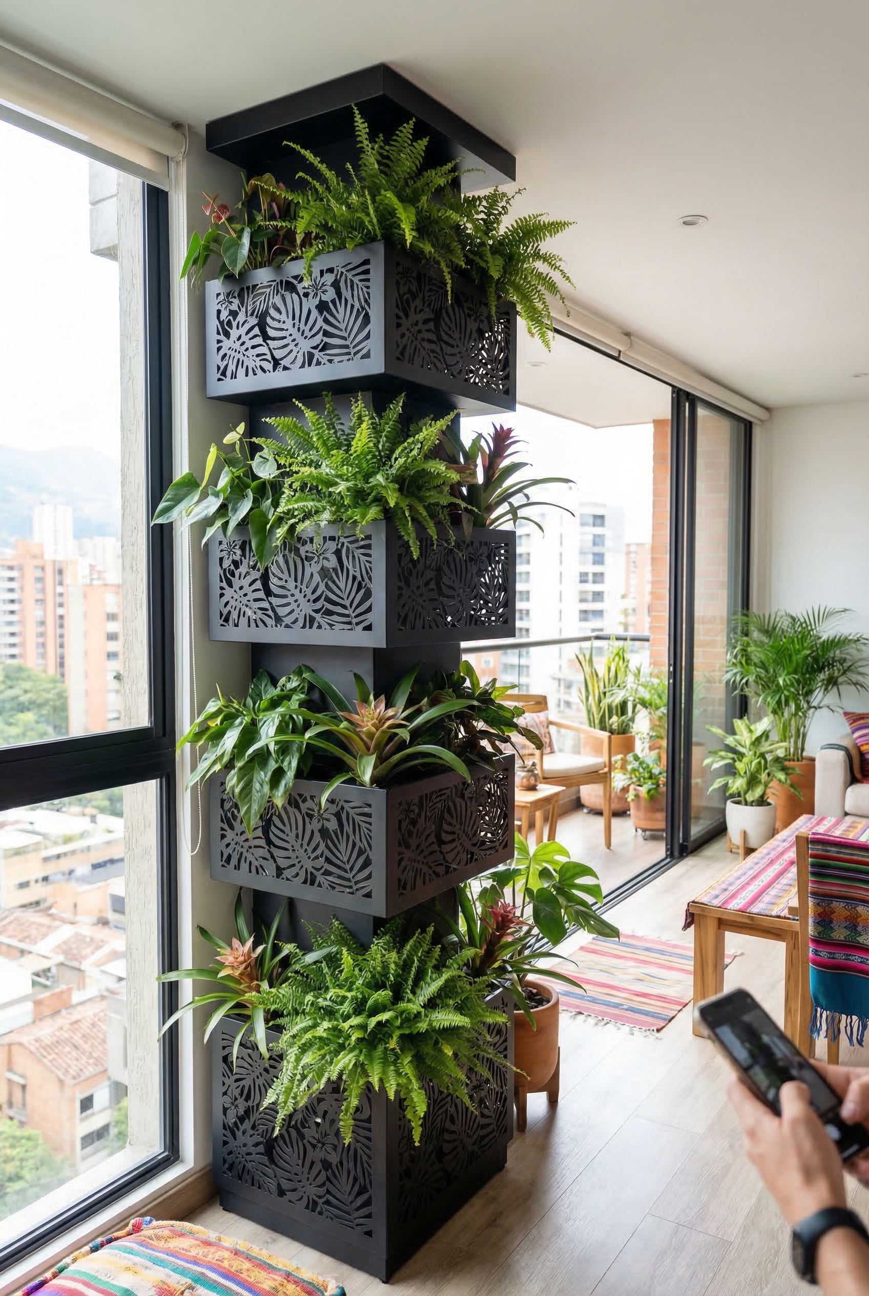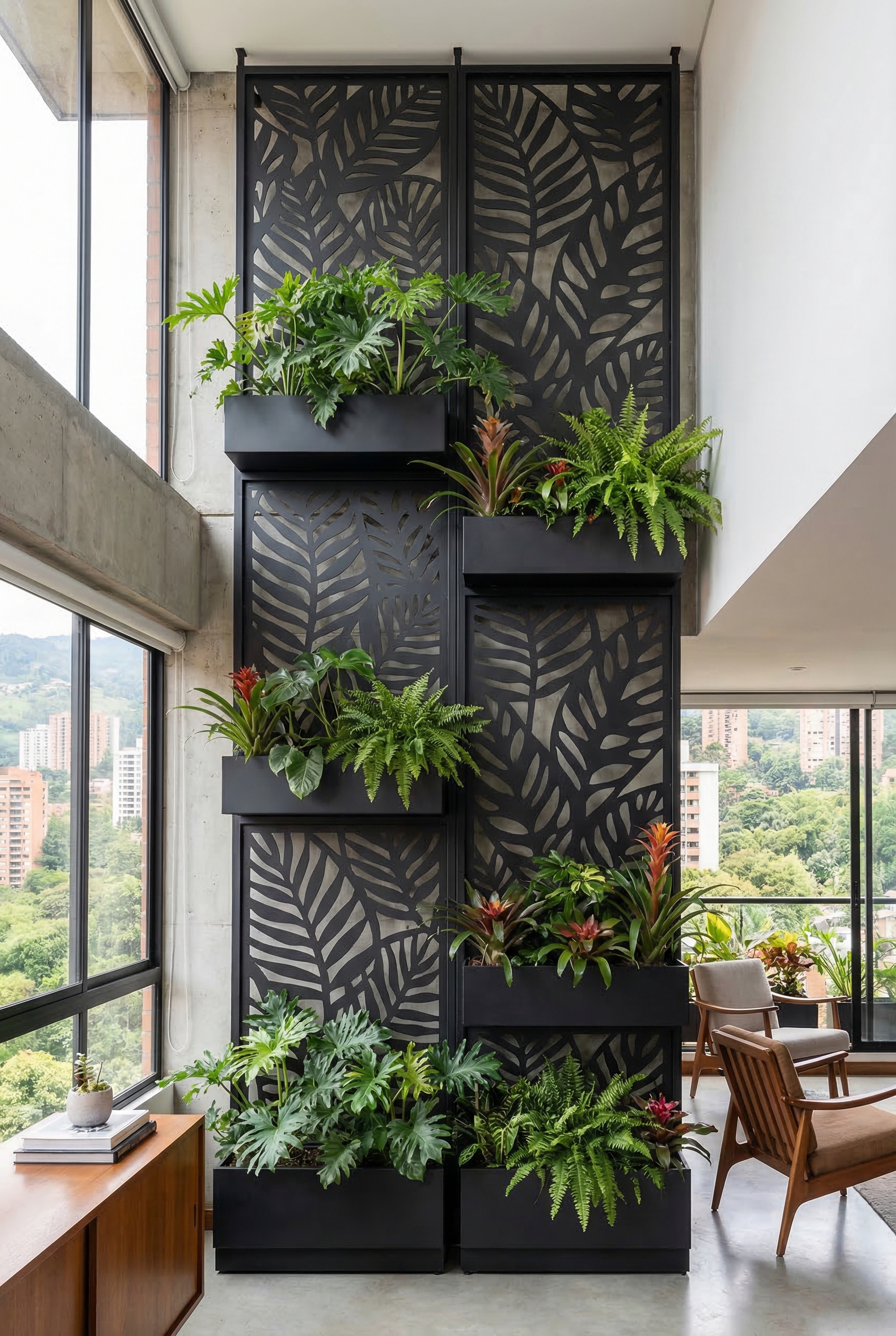 Nuestras macetas y estructuras metálicas para plantas combinan diseño arquitectónico, corte láser decorativo y fabricación de alta precisión. Cada pieza está diseñada con caras planas y geometrías limpias, ideales para procesos de corte y doblado, permitiendo integrar patrones botánicos, geométricos o artísticos que aportan carácter al espacio. Estas piezas funcionan tanto como contenedores para plantas como elementos decorativos que transforman balcones, interiores, oficinas y terrazas en ambientes modernos y naturales.